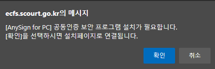 해당 페이지에 처음 접속하려면 보안프로그램을 설치해야한다는 안내문이 등장합니다. 아무래도 민감한 부분들이 있기 때문이겠죠. 안내되는 프로그램을 설치하면 본격적으로 홈페이지를 이용하실 수 있습니다.