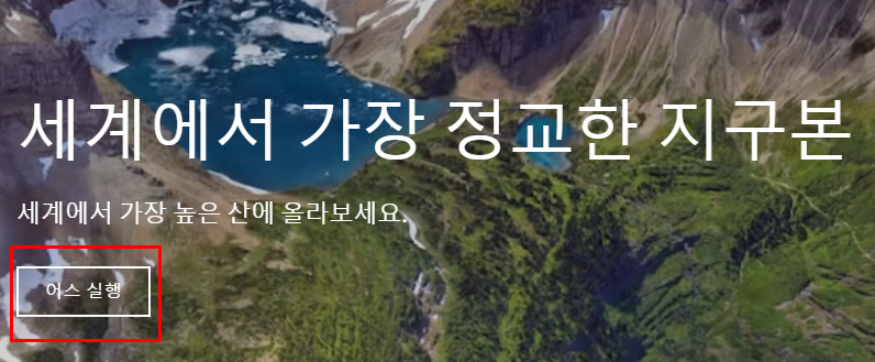 검색 혹은 1번에서 소개한 링크를 이용하여 홈페이지에 접속하다록 합니다. 메인 홈페이지를 보시면 구글 어스 실행에 관련된 버튼을 확인할 수 있습니다. 해당 버튼을 클릭하면 웹상에서 구글 어스를 실행할 수 있습니다. 아래 사진을 참고하면 도움이 될 수 있습니다.